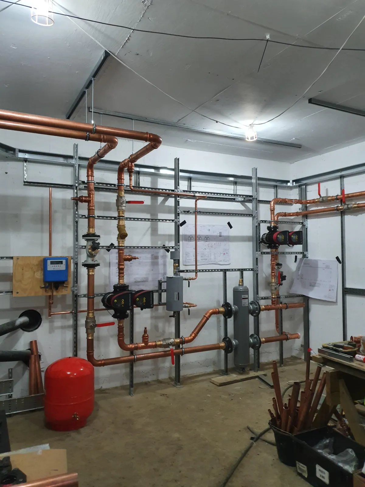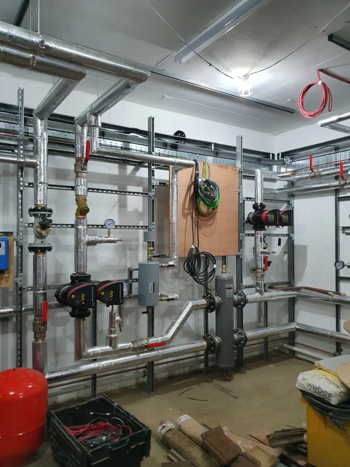 Engineered a compact, multi-level plant layout to accommodate three heat pumps, two oil boilers, and three cylinders within a limited space.